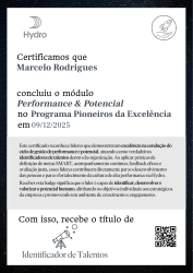 Esta badge reconhece líderes que demonstraram excelência na condução do ciclo de gestão de performance e potencial, atuando como verdadeiros identificadores de talentos dentro da organização. Ao aplicar práticas de definição de metas SMART, acompanhamento contínuo, feedback eficaz e avaliação justa, esses líderes contribuem diretamente para o desenvolvimento das pessoas e para o fortalecimento da cultura de alta performance na Hydro.