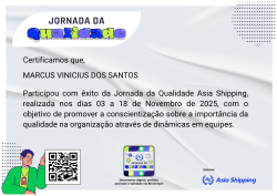 Este badge foi concedido aos colaboradores que participaram da Jornada da Qualidade 2025, evento promovido pelo Departamento de Qualidade da Asia Shipping.