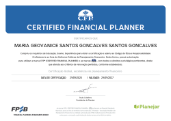 Símbolo de excelência em planejamento financeiro, o selo CFP® - Certified Financial Planner é a mais respeitada certificação internacional de distinção, garantido ao profissional certificado o reconhecimento de suas habilidades e competências na atividade de planejador financeiro pessoal e familiar por parte de seus clientes, parceiros e do mercado.