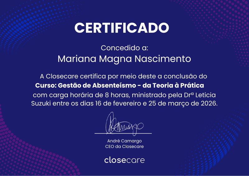 O curso de Gestão de Absenteísmo: da Teoria à Prática aconteceu entre os dias 16 de fevereiro e 25 de março. As aulas foram ministradas pela Drª Leticia Suzuki (https://www.linkedin.com/in/leticia-cristina-suzuki-621585131/). O curso foi composto por oito aulas que abordaram os seguintes tópicos: