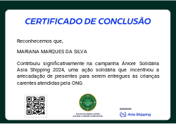 Esta badge digital reconhece a sua participação na Campanha Árvore Solidária de Natal 2024 da Asia Shipping.