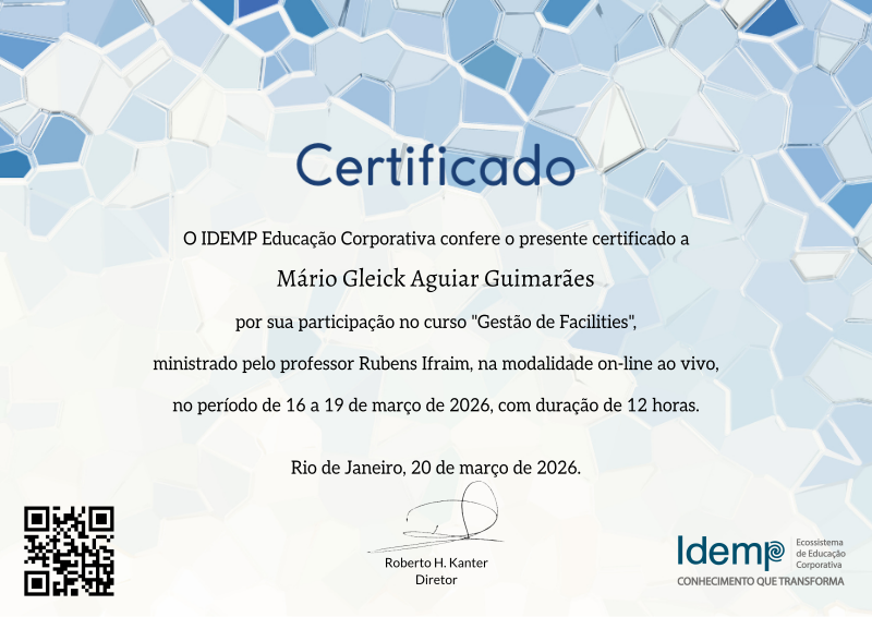Ao longo do curso, você se desenvolverá os conhecimentos no perfil do novo profissional de facilities, como que essa área se relaciona dentro do contexto das organizações de qualquer tamanho, tanto publicas como privadas.