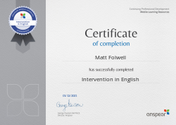 Awarded for completing the Intervention in English CPD course from Anspear.