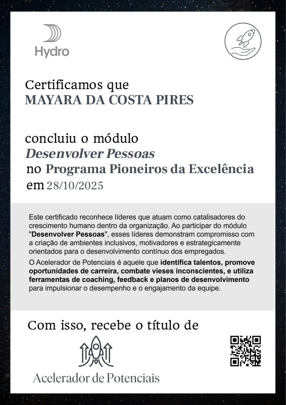 ✅ Participar integralmente do módulo "Desenvolver Pessoas" do programa Pioneiros da Excelência.