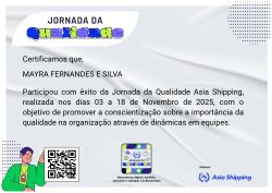 Este badge foi concedido aos colaboradores que participaram da Jornada da Qualidade 2025, evento promovido pelo Departamento de Qualidade da Asia Shipping.