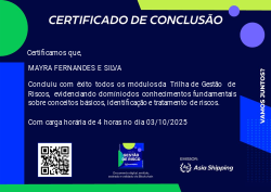 Esta badge certifica a conclusão da Trilha de Gestão de Riscos. O participante demonstrou domínio dos conhecimentos essenciais sobre a conceitos básicos, identificação e tratamento de riscos.