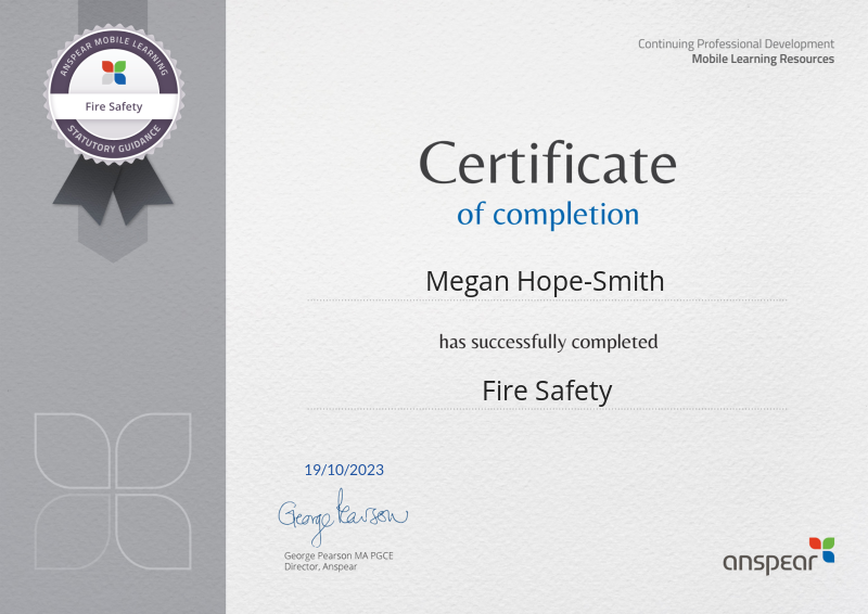 Awarded for completing the Fire Safety CPD course from Anspear.