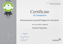 Awarded for completing the Trainee Teachers CPD course from Anspear.