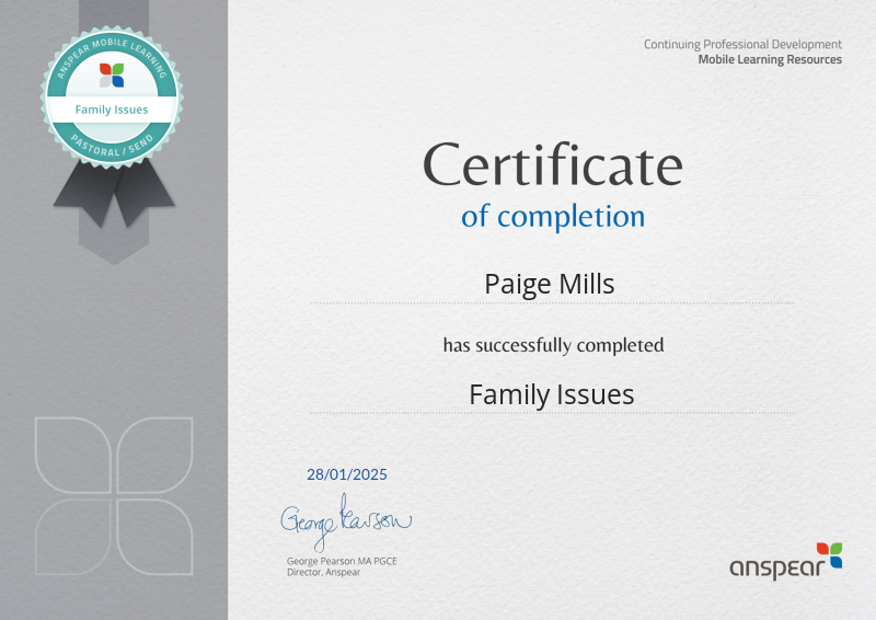Family Issues provides a short introduction to how children's family situations can affect them, with a focus on their impact on education and the roles and responsibilities of teachers and other school staff. Topics covered include divorce, bereavement, domestic violence and sibling relationships.