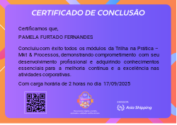 Certifica a conclusão da Trilha na Prática – Mkt & Processos, referente as campanhas de marketing e otimização de processos internos.