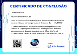 A Trilha Cyber é um dos badges do programa de certificação da Asia Shipping. Ela aborda as melhores práticas de uso dos sistemas internos e do e-mail corporativo, reforçando a segurança e a eficiência no ambiente digital.