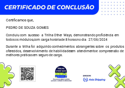 Este badge digital reconhece a sua expertise abrangente em produtos, atendimento e seguro de carga. Completando a Trilha Other Ways, você demonstrou profundo conhecimento nas complexidades dos nossos produtos, habilidades excepcionais em fornecer um atendimento excepcional ao cliente e uma compreensão detalhada das estratégias eficazes de seguros de carga.