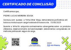 Este badge digital reconhece a sua expertise abrangente em produtos, atendimento e seguro de carga. Completando a Trilha Other Ways, você demonstrou profundo conhecimento nas complexidades dos nossos produtos, habilidades excepcionais em fornecer um atendimento excepcional ao cliente e uma compreensão detalhada das estratégias eficazes de seguros de carga.