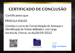 O treinamento de Conscientização de Ameaças e Identificação de Vulnerabilidades disponível aos fornecedores visa apresentar as ameaças e vulnerabilidades da cadeia logística nacional e internacional através de nossas competências.