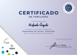Para ganhar esta medalha e certificado, o aluno concluiu a carga horária do módulo 1 - nível Alba da Certificação Especialista em Cultura e entregou seu trabalho de conclusão de módulo com nota satisfatória.