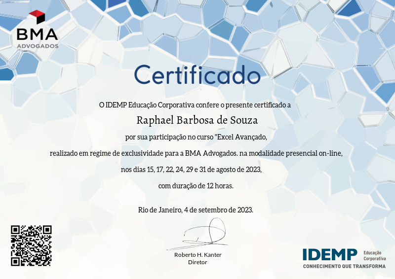 Curso para quem necessita um conhecimento aprofundado do aplicativo Excel com aprendizado avançado em fórmulas; tratamento de dados com Power Query; formatações personalizadas e condicionais; relatórios com tabela dinâmica avançado; ferramentas de simulação; além de conceitos sólidos de criação e gravação de macros.