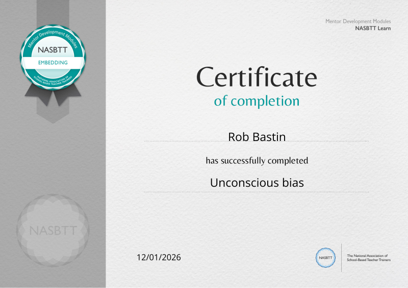 Unconscious bias awareness is vital to successful learning and teaching. This module supported mentors in their own awareness of this area and equip them to support and inform their mentees.