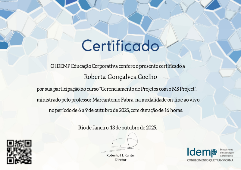 Gerenciar projetos de forma eficiente é essencial para o sucesso das empresas, garantindo prazos, custos e qualidade dentro do planejado. O Microsoft Project é uma das ferramentas mais utilizadas no mundo corporativo para planejamento e controle de projetos, proporcionando maior organização e previsibilidade. Este curso foi desenvolvido para capacitar profissionais na utilização do MS Project, alinhando boas práticas de gerenciamento de projetos às funcionalidades da ferramenta. Durante as 16 horas de treinamento, os participantes vão aprender desde os conceitos fundamentais até a execução e controle de um projeto real, adquirindo habilidades práticas e aplicáveis ao seu dia a dia profissional. Se sua empresa busca aprimorar a gestão de projetos e aumentar a produtividade, este curso é ideal para sua equipe!
