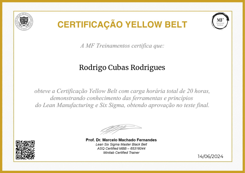 Adentrando nos princípios intermediários do Lean Six Sigma, a certificação Yellow Belt oferecida pela MF OPEX, sob a orientação do Professor Marcelo Fernandes, marca um avanço significativo no treinamento de excelência operacional. Através de um currículo meticulosamente estruturado que mescla teorias avançadas com aplicação prática, os participantes aprofundam seu entendimento em otimização de processos, análise avançada de dados e liderança de projetos. A renomada expertise do Professor Fernandes enriquece o programa com metodologias de ponta, capacitando os aprendizes a liderar melhorias impactantes dentro de suas organizações. Servindo como um marco pivotal no desenvolvimento profissional, esta certificação não apenas abre portas para projetos em maior escala, mas também cultiva a confiança e habilidades necessárias para impulsionar mudanças transformadoras em diversos setores da indústria.