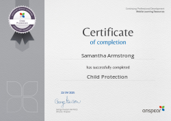 Awarded for completing the Child Protection CPD course from Anspear.