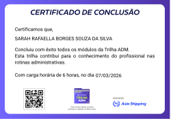 Esta badge é concedida aos colaboradores que completaram com sucesso a Trilha ADM, que teve como objetivo preparar o colaborador para atuar com excelência em rotinas administrativas essenciais.