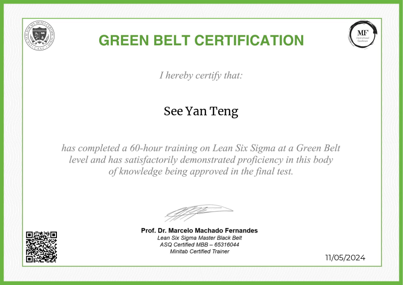 Exploring the principles of Lean Six Sigma, the Green Belt certification offered by MF OPEX, under the mentorship of Professor Marcelo Fernandes, represents a pivotal step forward in operational excellence training. Equipped with an extensive curriculum blending advanced theories with hands-on application, participants not only deepen their understanding of process optimization, advanced data analysis, and project leadership but also become adept at spearheading Lean Six Sigma projects. Professor Fernandes' esteemed guidance enriches the program with cutting-edge methodologies, empowering learners to drive substantial improvements within their organizations. Serving as a significant milestone in professional development, this certification not only qualifies individuals to lead larger-scale projects but also instills the confidence and expertise needed to enact transformative change across diverse industry landscapes.