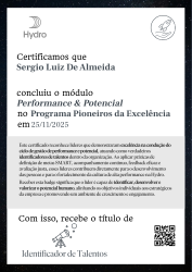 Esta badge reconhece líderes que demonstraram excelência na condução do ciclo de gestão de performance e potencial, atuando como verdadeiros identificadores de talentos dentro da organização. Ao aplicar práticas de definição de metas SMART, acompanhamento contínuo, feedback eficaz e avaliação justa, esses líderes contribuem diretamente para o desenvolvimento das pessoas e para o fortalecimento da cultura de alta performance na Hydro.