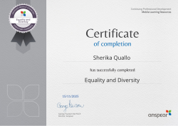 Awarded for completing the Equality and Diversity CPD course from Anspear.