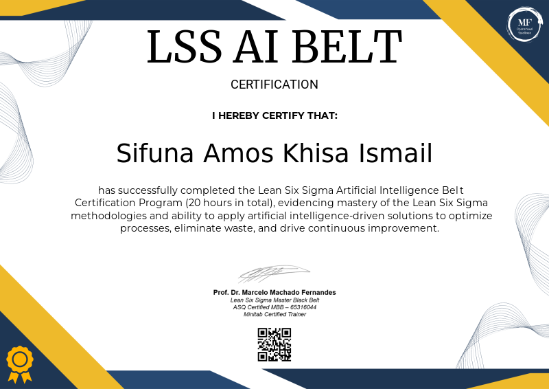 The Lean Six Sigma Artificial Intelligence Belt is a specialized certification that integrates the core principles of Lean Six Sigma with the cutting-edge capabilities of artificial intelligence. This certification equips professionals with the tools to analyze data, optimize processes, and eliminate waste more effectively through AI-driven insights. By blending statistical methodologies with machine learning and automation, individuals holding this certification can drive continuous improvement, enhance operational efficiency, and deliver measurable results in complex environments, leveraging technology to solve problems faster and with greater precision.
