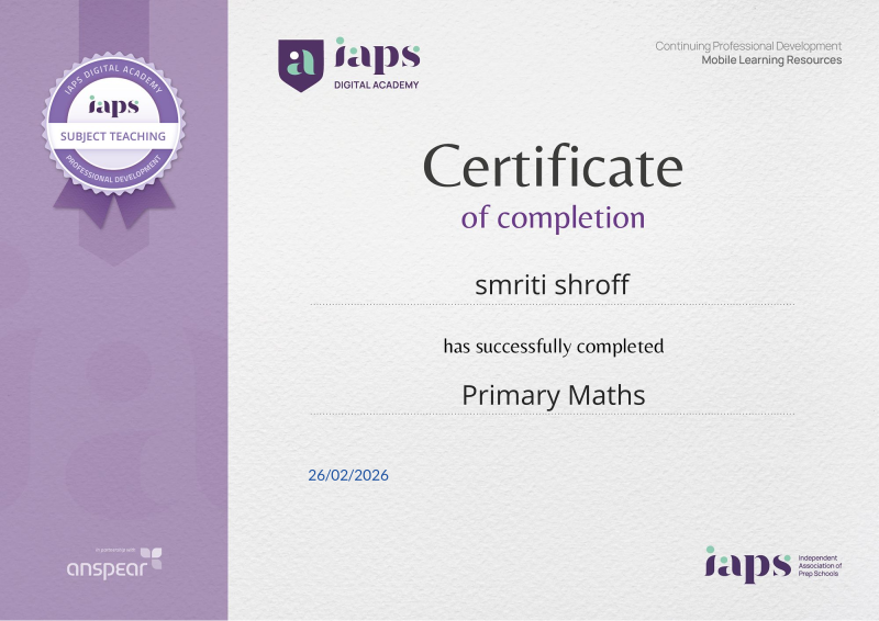 Awarded for completing the Primary Maths CPD course from the IAPS Digital Academy.