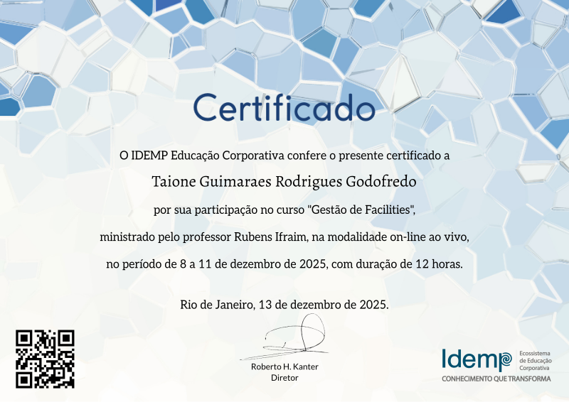 Ao longo do curso, você se desenvolverá os conhecimentos no perfil do novo profissional de facilities, como que essa área se relaciona dentro do contexto das organizações de qualquer tamanho, tanto publicas como privadas.