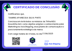 Esta badge é concedida aos colaboradores que completaram com sucesso a Trilha M2U, que teve como objetivo proporcionar uma visão estratégica sobre os pilares da comunicação e do posicionamento da marca, além de fortalecer o entendimento do marketing como ferramenta essencial no contexto organizacional.
