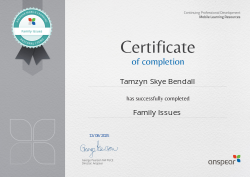 Awarded for completing the Family Issues CPD course from Anspear.