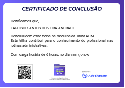 Esta badge é concedida aos colaboradores que completaram com sucesso a Trilha ADM, que teve como objetivo preparar o colaborador para atuar com excelência em rotinas administrativas essenciais.