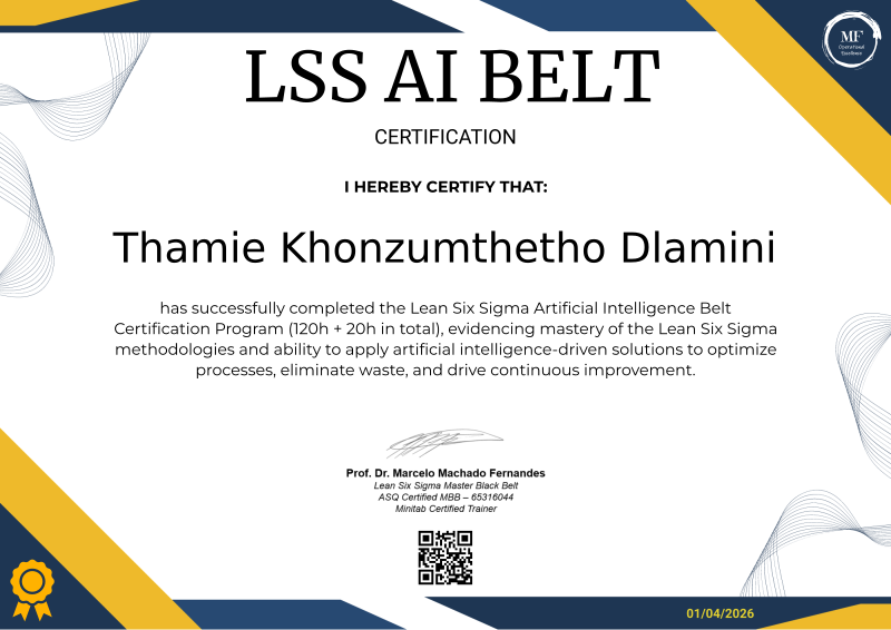 The Lean Six Sigma Artificial Intelligence Belt is a specialized certification that integrates the core principles of Lean Six Sigma with the cutting-edge capabilities of artificial intelligence. This certification equips professionals with the tools to analyze data, optimize processes, and eliminate waste more effectively through AI-driven insights. By blending statistical methodologies with machine learning and automation, individuals holding this certification can drive continuous improvement, enhance operational efficiency, and deliver measurable results in complex environments, leveraging technology to solve problems faster and with greater precision.