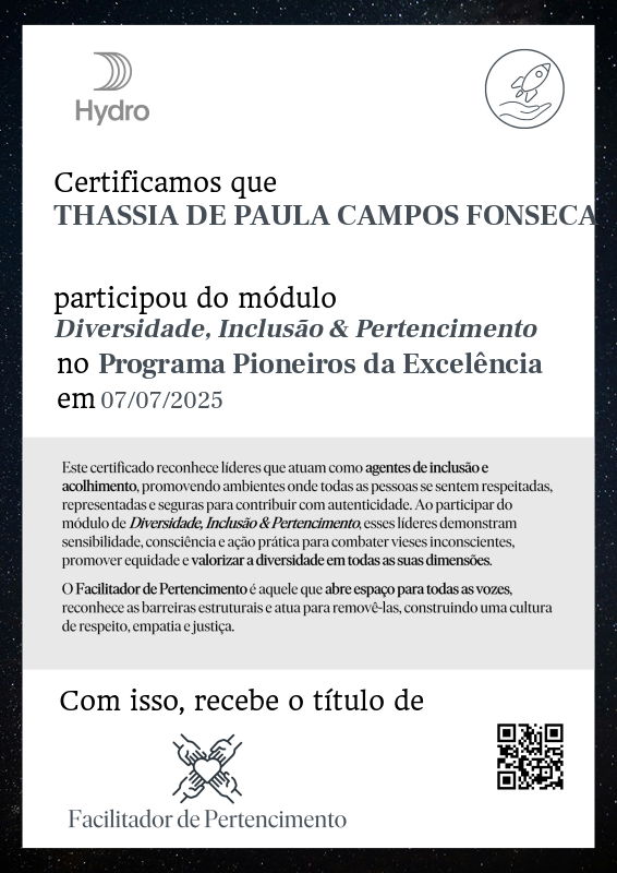 ✅ Participar integralmente do módulo "Diversidade, Inclusão & Pertencimento" do programa Pioneiros da Excelência.