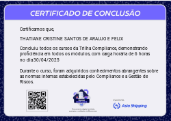 A Trilha Compliance é mais uma Badge do programa de certificação da Asia Shipping. Com ela você terá a oportunidade de conhecer mas sobre Compliance na Asia Shipping, como também Gestão de Riscos, suas principais definições e etapas de identificação.