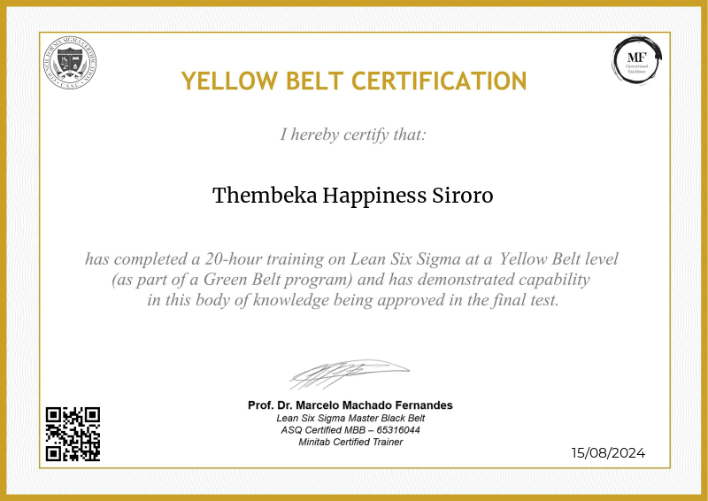 Delving into the intermediate principles of Lean Six Sigma, the Yellow Belt certification provided by MF OPEX, guided by Professor Marcelo Fernandes, marks a significant progression in operational excellence training. Through a meticulously structured curriculum blending advanced theories with practical application, participants deepen their understanding of process optimization, advanced data analysis, and project leadership. Professor Fernandes' renowned expertise enriches the program with cutting-edge methodologies, empowering learners to spearhead impactful improvements within their organizations. Serving as a pivotal milestone in professional development, this certification not only opens doors to larger-scale projects but also fosters the confidence and skills needed to drive transformative change across diverse industry landscapes.