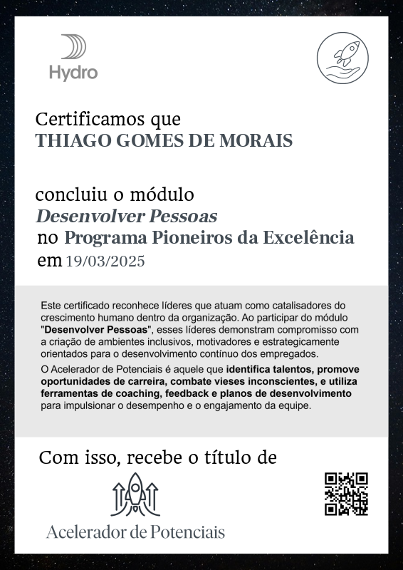 Esta badge reconhece líderes que atuam como catalisadores do crescimento humano dentro da organização. Ao participar do módulo "Desenvolver Pessoas", esses líderes demonstram compromisso com a criação de ambientes inclusivos, motivadores e estrategicamente orientados para o desenvolvimento contínuo dos colaboradores.