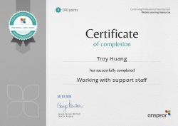 Awarded for passing the end of module test of the online/mobile course Working with support staff.