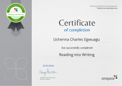 Awarded for completing the Reading into Writing CPD course from Anspear.