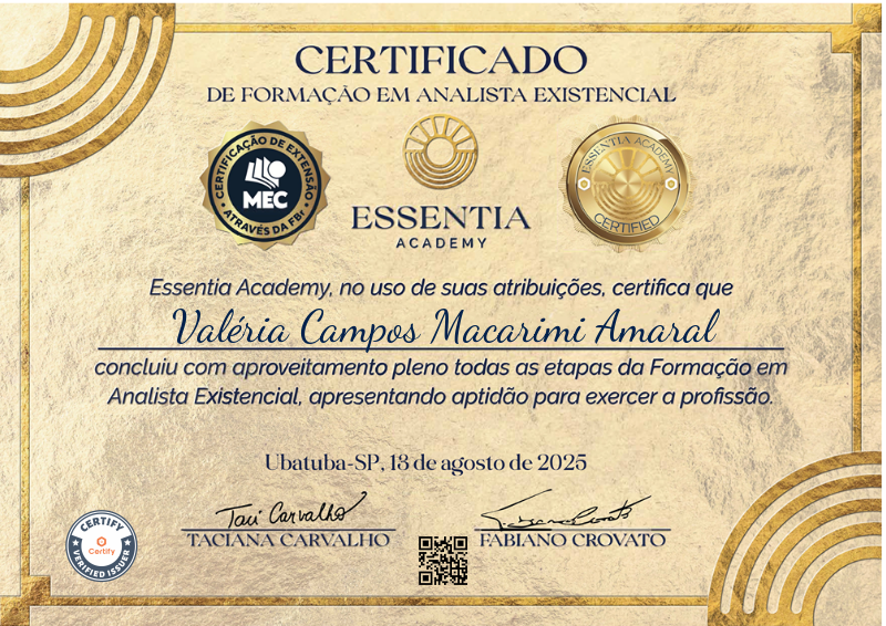 A Certificação em Analista Existencial é uma formação 100% online, entregue pela Taci Carvalho, Fabiano Crovato e demais professores da Essentia Academy Evolução Humana, para capacitar profissionais a serem agentes da evolução humana, bem como se tornarem maiores e melhores instrumentos Divinos na Terra.