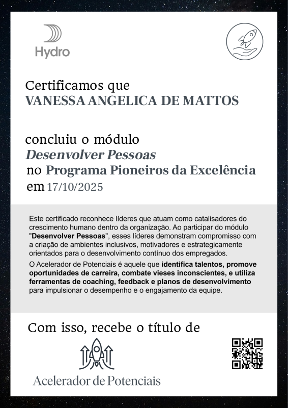 ✅ Participar integralmente do módulo "Desenvolver Pessoas" do programa Pioneiros da Excelência.