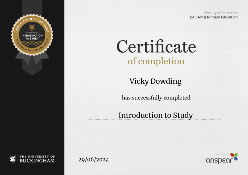 You've finished the Introduction to Study course! The course helped you prepare to start the BA Primary Education course.