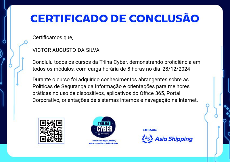 A Trilha Cyber é um dos badges do programa de certificação da Asia Shipping. Ela aborda as melhores práticas de uso dos sistemas internos e do e-mail corporativo, reforçando a segurança e a eficiência no ambiente digital.