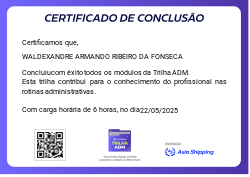 Esta badge é concedida aos colaboradores que completaram com sucesso a Trilha ADM, que teve como objetivo preparar o colaborador para atuar com excelência em rotinas administrativas essenciais.