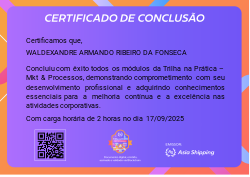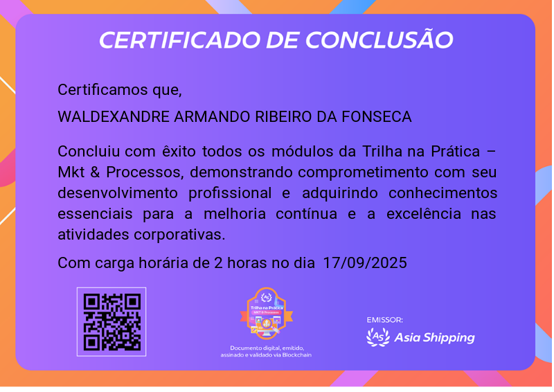 Certifica a conclusão da Trilha na Prática – Mkt & Processos, referente as campanhas de marketing e otimização de processos internos.