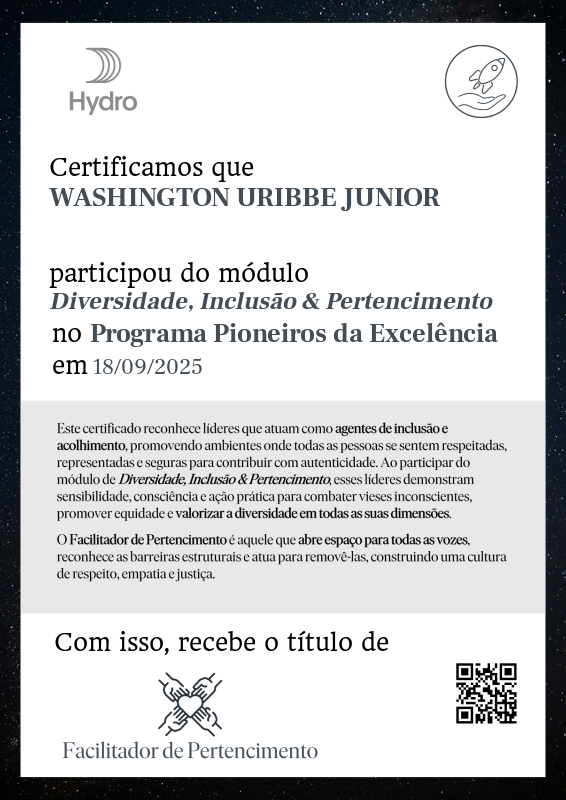 Esta badge reconhece líderes que atuam como agentes de inclusão e acolhimento, promovendo ambientes onde todas as pessoas se sentem respeitadas, representadas e seguras para contribuir com autenticidade. Ao participar do módulo Diversidade, Inclusão & Pertencimento, esses líderes demonstram sensibilidade, consciência e ação prática para combater vieses inconscientes, promover equidade e valorizar a diversidade em todas as suas dimensões.