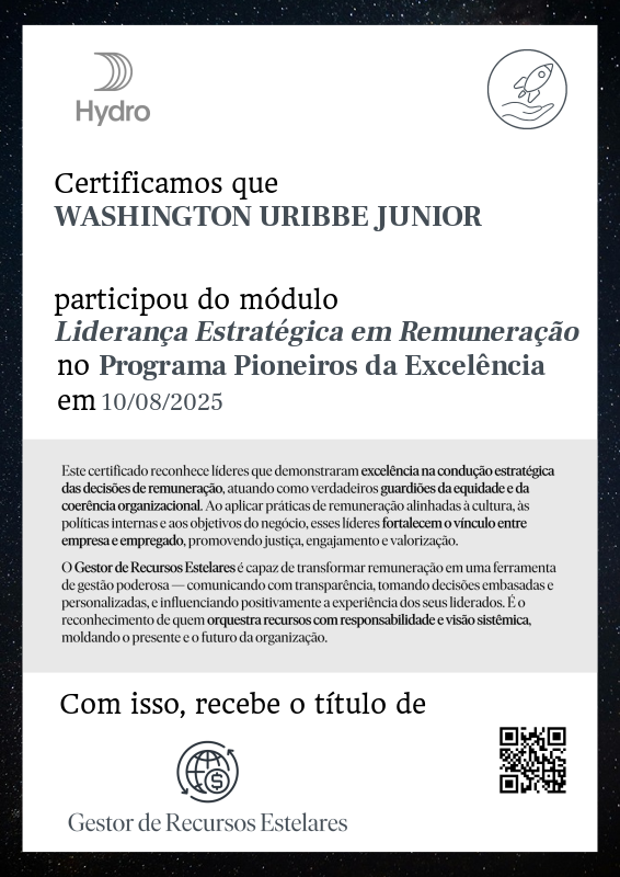 O Gestor de Recursos Estelares é capaz de transformar remuneração em uma ferramenta de gestão poderosa — comunicando com transparência, tomando decisões embasadas e personalizadas, e influenciando positivamente a experiência dos seus liderados. É o reconhecimento de quem orquestra recursos com responsabilidade e visão sistêmica, moldando o presente e o futuro da organização.