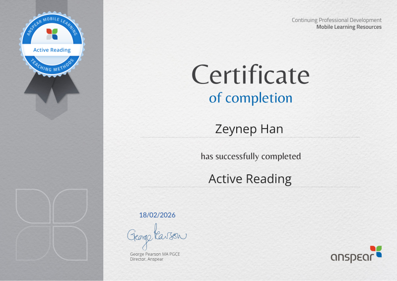 Awarded for completing the Active Reading CPD course from Anspear.